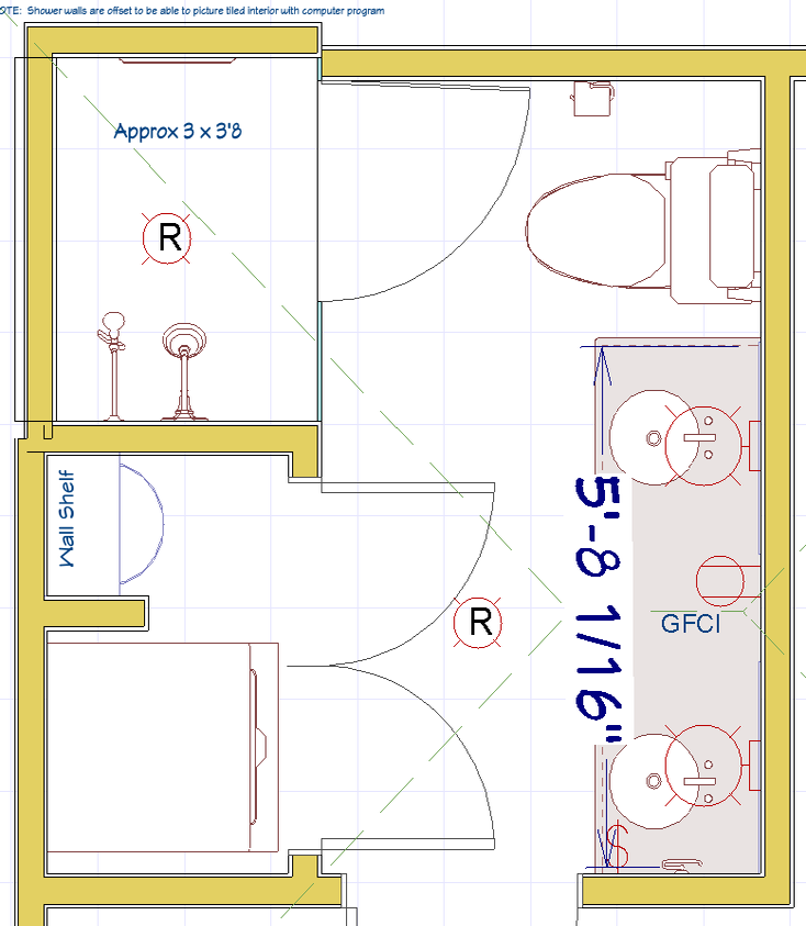 Quartz Countertop, Tiled Walls, Custom Tiled Shower w/ Heavy Glass, Mirror and Lighting w/ Existing Cabinet